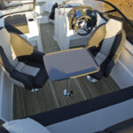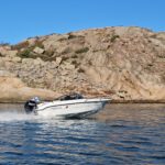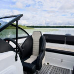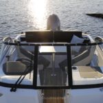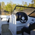 Den centralt placerade styrkonsolen ger bra sikt och balanserad körupplevelse. Soffan akterut och sittplatser i fören skapar en social miljö där familj och vänner sitter tryggt även i högre fart.